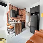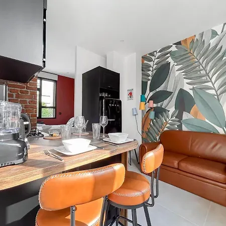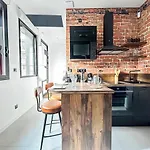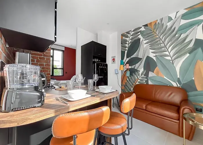 台所で食事を作られます。 Groupe Hospitalier Mutualisteバス停はStudio 102 - Premium, Climatisation, Garage数歩の距離の場所にあります。